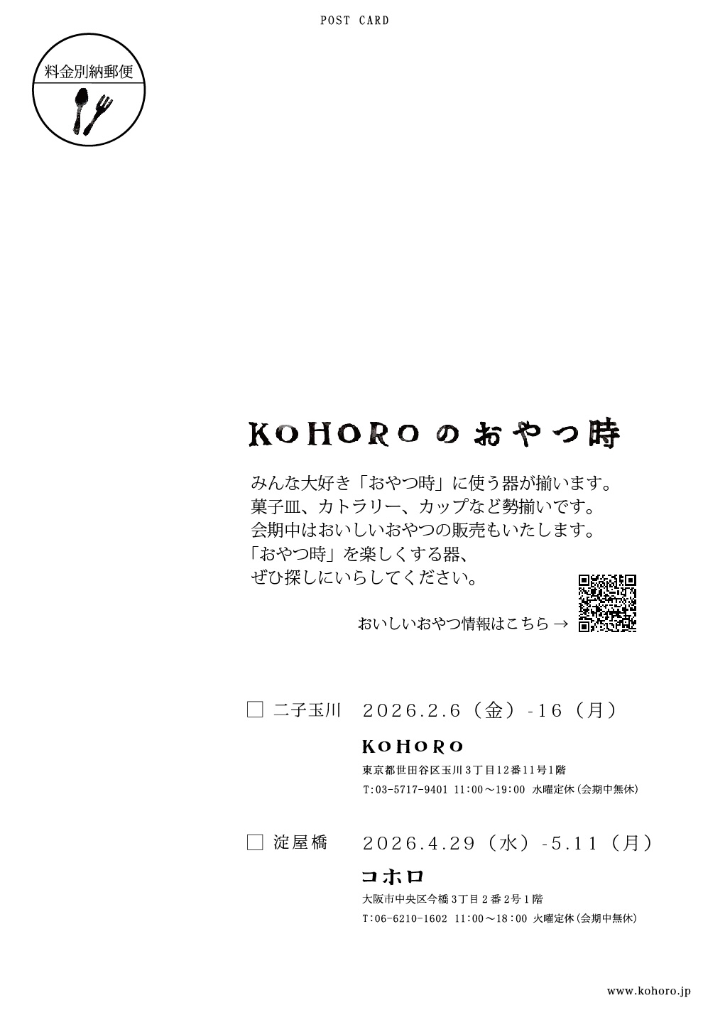 KOHOROのおやつ時 2月6日-16日