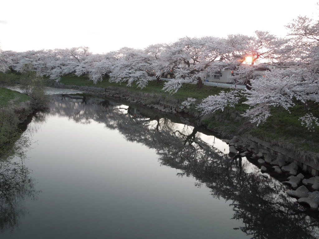 夕暮れ時の桜もきれいです。